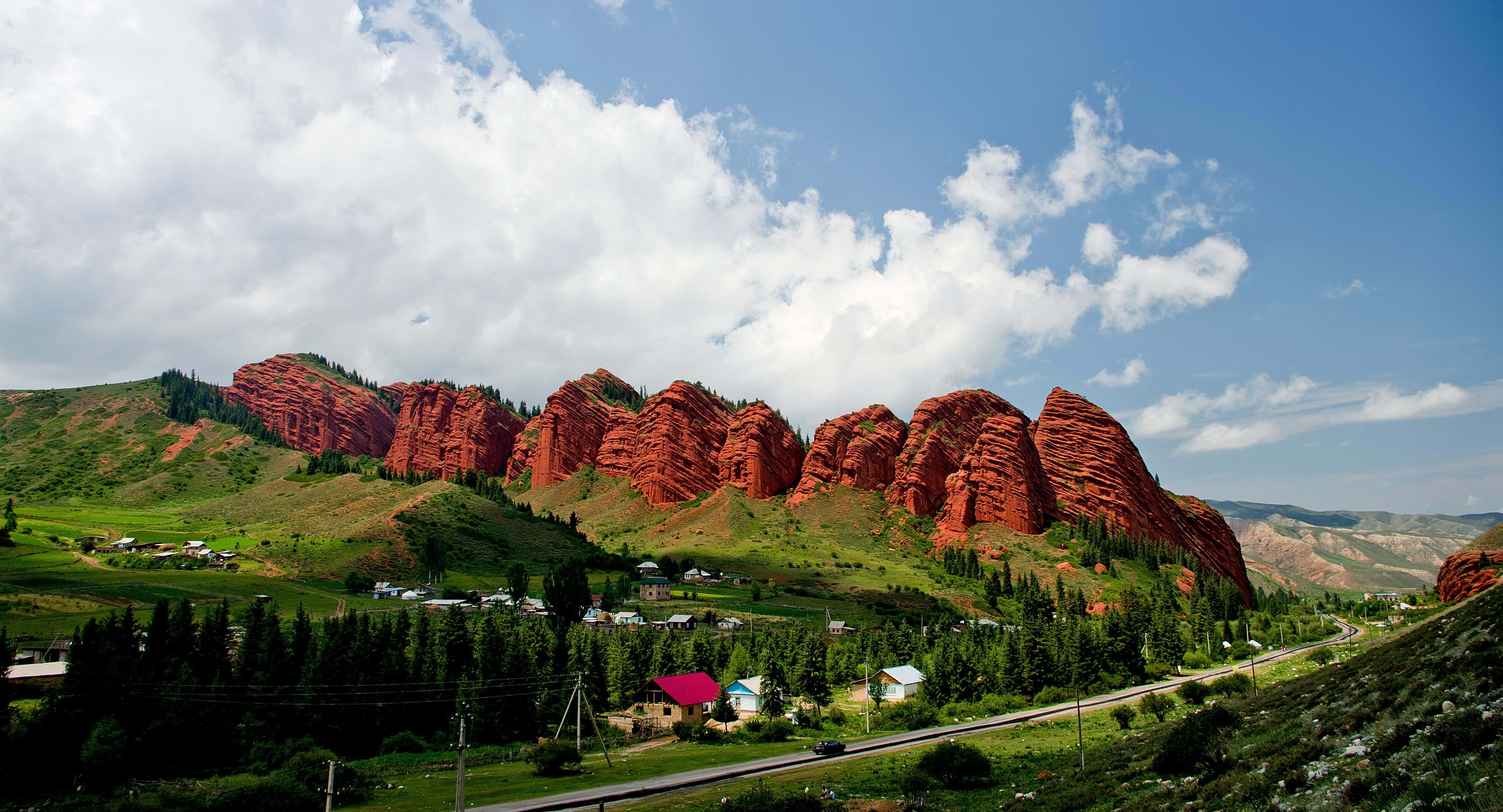 Gaze upon the spectacular Tian Shan mountains, where snow-capped peaks tower above emerald-green valleys. Perfect for trekking, horseback riding, or simply soaking in the breathtaking landscapes.
